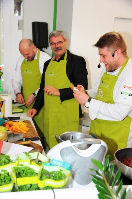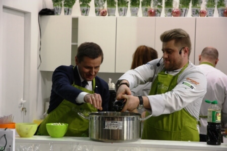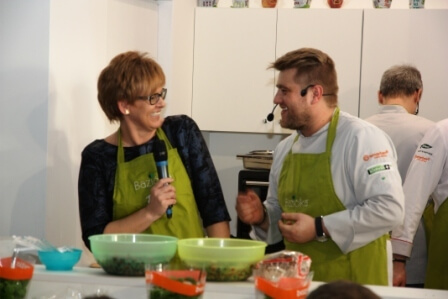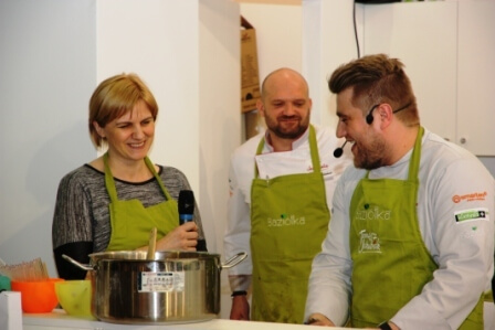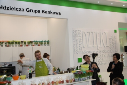 Dla osób odwiedzających nasze stoisko przygotowaliśmy atrakcję: pokazy kulinarne w wykonaniu znanego mistrza kuchni, Tomasza Jakubiaka. W pokazie wykorzystane zostały produkty pochodzące z produkcji bezpośredniej polskich gospodarstw rolnych. We wspólne gotowanie z Tomaszem Jakubiakiem zaangażowali się Prezesi i pracownicy Banków Spółdzielczych, a także nasi klienci.