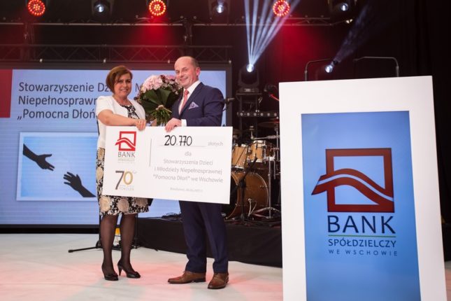 Podczas Gali, Prezes Banku wręczył nagrodę główną w zorganizowanej z okazji obchodów 70-lecia Loterii Jubileuszowej, tj. samochód osobowy Toyota Corolla, klientowi jednego z Oddziałów Banku oraz przekazał na ręce Prezes Stowarzyszenia Dzieci i Młodzieży Niepełnosprawnej „Pomocna Dłoń” we Wschowie symboliczny czek. Bank Spółdzielczy we Wschowie nieustannie angażuje się w życie lokalnej społeczności, dlatego też Bank zachęcał do wsparcia finansowego Stowarzyszenia. Środki, które udało się uzyskać dzięki wpłatom darczyńców obecnych na uroczystości to 28.920 zł.