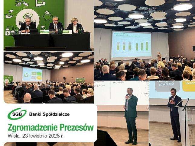 Mówiono również o digitalizacji i cyberbezpieczeństwie oraz ustawie o funkcjonowaniu banków spółdzielczych. W Zgromadzeniu wzięli udział prezesi Banków Spółdzielczych SGB, zarządy SGB-Banku, Spółdzielczego Systemu Ochrony IPS-SGB oraz spółek zależnych: SGB Leasing, SGB Faktoring i BODiE.