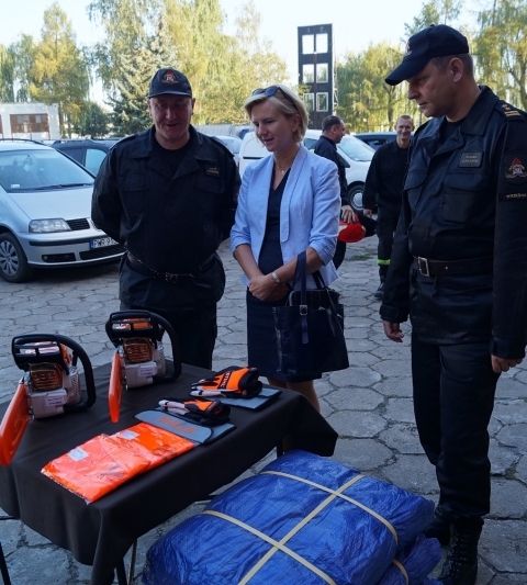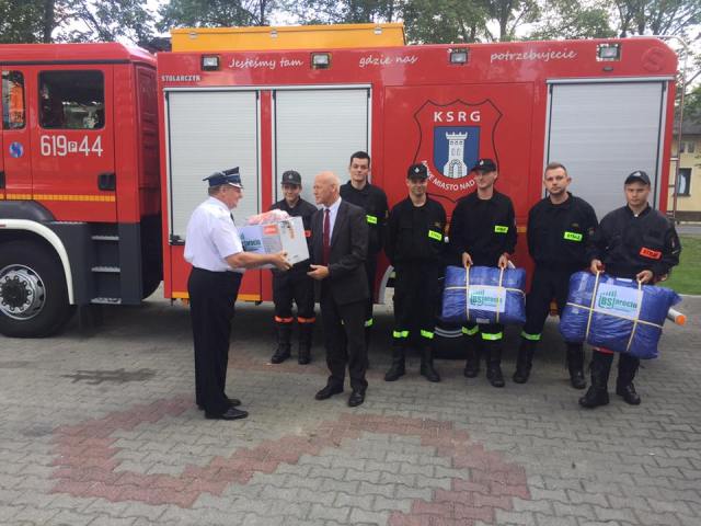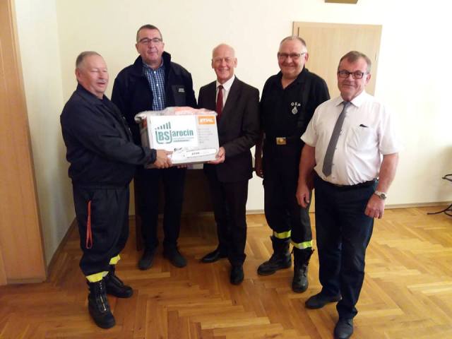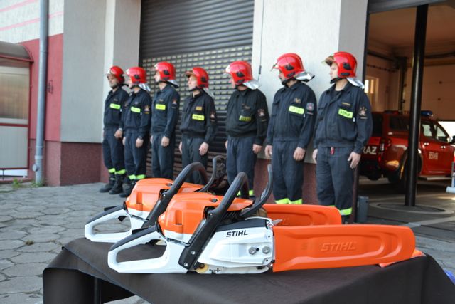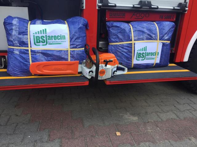 Joanna Pikora-Ignasiak, Prezes Powiatowego Banku Spółdzielczego we Wrześni, oraz Jan Grzesiek, Prezes Zarządu Banku Spółdzielczego w Jarocinie, przekazali w imieniu Banków Spółdzielczych SGB zestawy wspomagające akcje ratunkowe. Znalazły się w nich profesjonalne pilarki spalinowe, plandeki ochronne oraz odzież, które w przyszłości pomogą strażakom w niesieniu pomocy poszkodowanym.