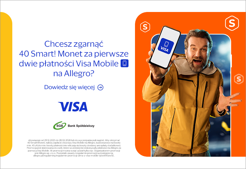 Warto skorzystać z Visa Mobile – szczególnie teraz, gdy trwa 2 część promocji, w której można łatwo wygrać 40 Smart! Monet na Allegro.