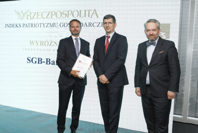 Miło nam poinformować, że SGB-Bank SA został uhonorowany wyróżnieniem w kategorii „Instytucje finansowe” przez kapitułę konkursu „Indeks Patriotyzmu Polskiego Biznesu”, przygotowanego przez Fundację Patriotyzmu Gospodarczego oraz redakcję dziennika „Rzeczpospolita”. Nagroda docenia firmy, które w szczególny sposób przyczyniają się do rozwoju Polski, promują wartości patriotyczne i etyczne. Nagrody zostały wręczone laureatom 18 czerwca br.