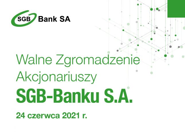 Podwyższenie kapitału akcyjnego, udzielenie absolutorium członkom Rady Nadzorczej oraz członkom Zarządu SGB-Banku SA, a także przyjęcie nowych regulacji wynikających z Rekomendacji Z, to najważniejsze decyzje podjęte przez Walne Zgromadzenie Akcjonariuszy SGB-Banku SA, które odbyło się w czwartek, 24 czerwca 2021 roku.